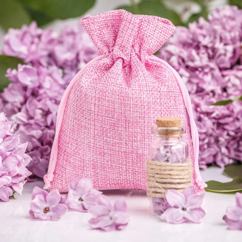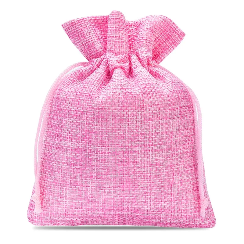 10 sztuk woreczków jutowych w kolorze różowym jasnym w rozmiarze 13 cm x 18 cm.