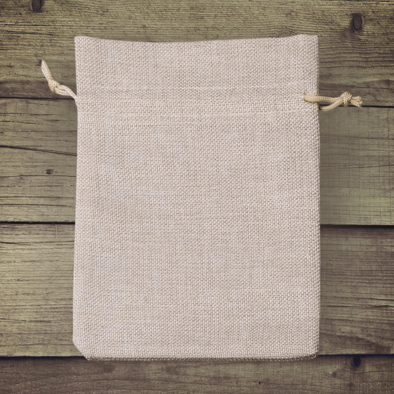 Nasze woreczki powstały z mocnej tkaniny, która wizualnie naśladuje jutę, ale przewyższa ją pod względem praktycznym. Materiał o wyglądzie juty jest odporny na przetarcia, nie pyli i nie gniecie się tak łatwo jak naturalne włókna. Woreczki zamykane są sznurkiem, co jest praktyczne i estetyczne. To gwarancja, że Twoje opakowanie zawsze będzie wyglądać profesjonalnie.