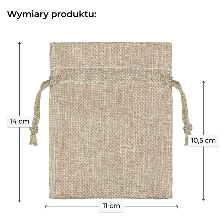 Niewielkie, bardzo uniwersalne woreczki z eleganckiej juty w kolorze naturalnym w rozmiarze 11 cm x 14 cm. Prezentowany pakiet składa się z 10 sztuk, dzięki czemu jednorazowy zakup może wystarczyć na dłuższy czas.