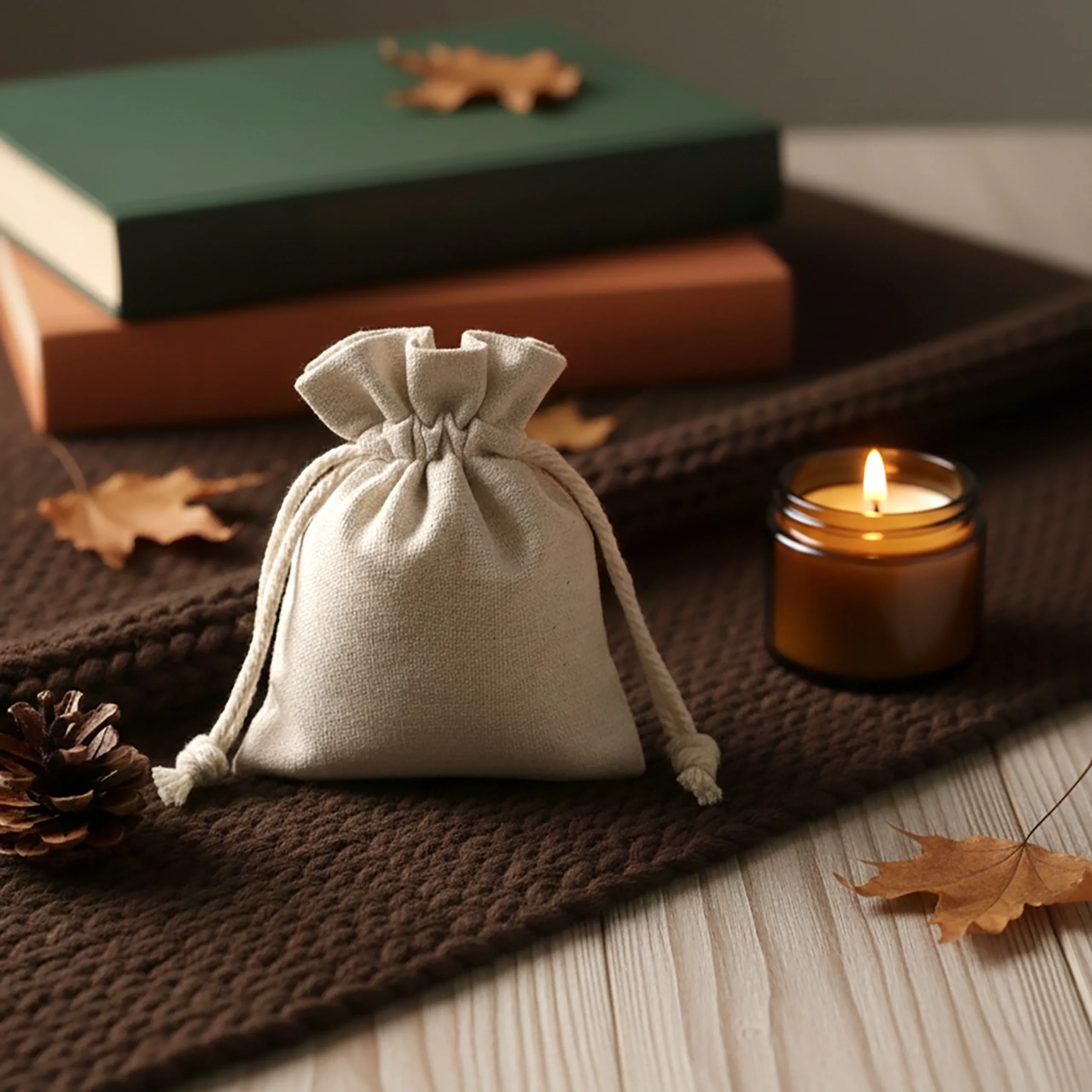To wielorazowe opakowania, które łączą naturalny wygląd z funkcjonalnością. Sprawdzają się jako trwała alternatywa dla opakowań jednorazowych, pomagają uporządkować drobiazgi, a rustykalna faktura podkreśla charakter produktów handmade i rzemieślniczych upominków. Podwójny sznurek zwiększa wygodę codziennego użytkowania.