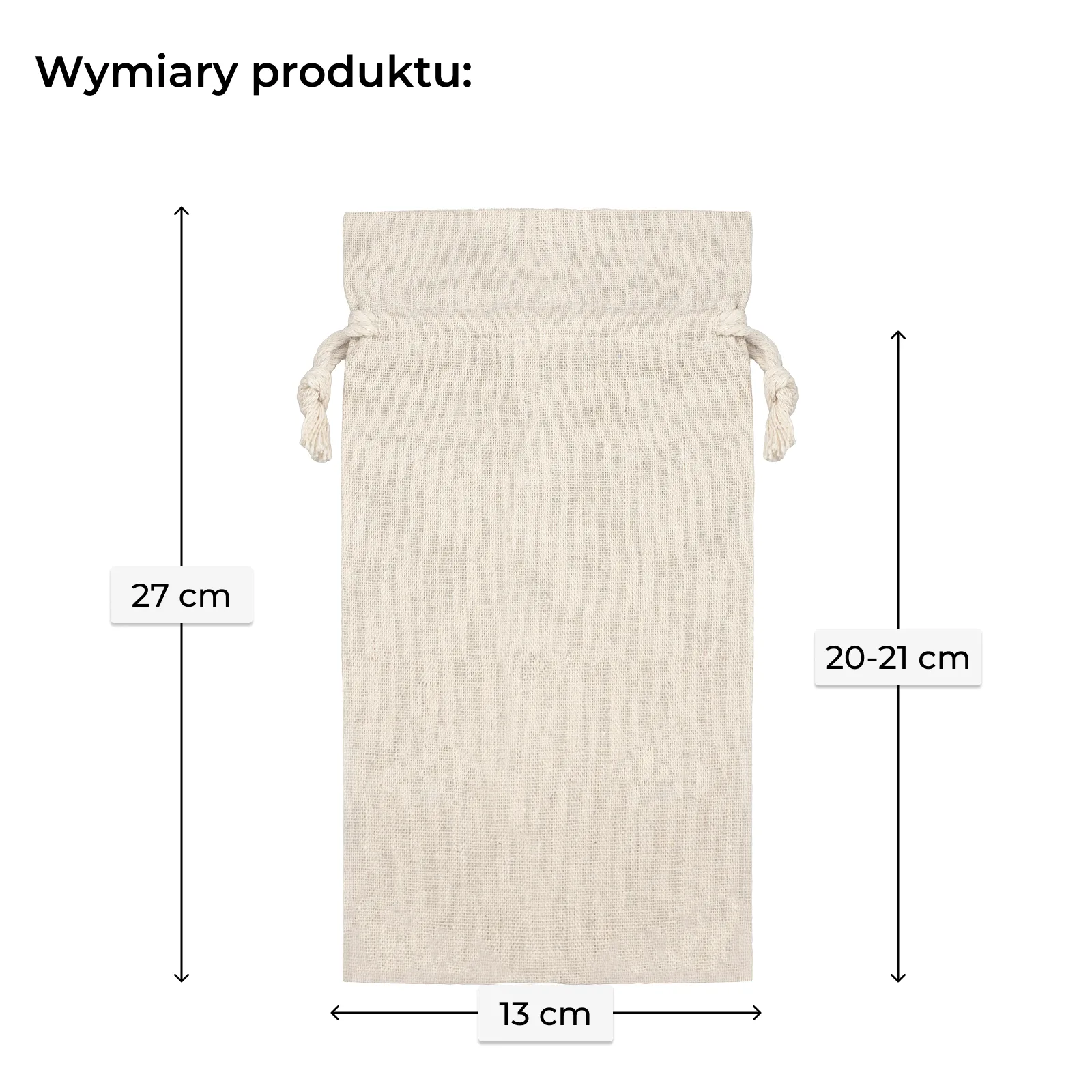 Materiał, z którego szyjemy nasze woreczki, to wysokiej jakości mieszanka bawełny i poliestru. Dzięki temu, woreczki nie tylko wyglądają jak prawdziwy len, ale są również od niego znacznie trwalsze i bardziej odporne na zagniecenia. Woreczki zamykane są sznurkiem ze 100% bawełny, co jest praktyczne i estetyczne. To gwarancja, że Twój prezent będzie wyglądał nienagannie w każdej sytuacji.