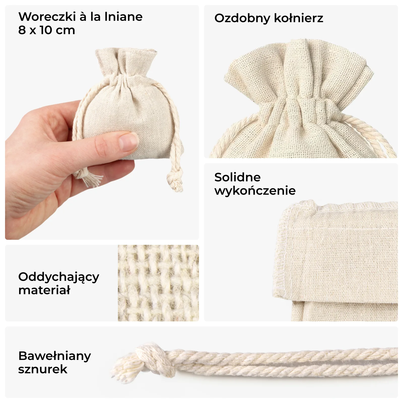 Wybierz woreczki à la lniane 8x10 cm i zapakuj swoje drobne produkty w sposób naturalny, estetyczny i funkcjonalny.