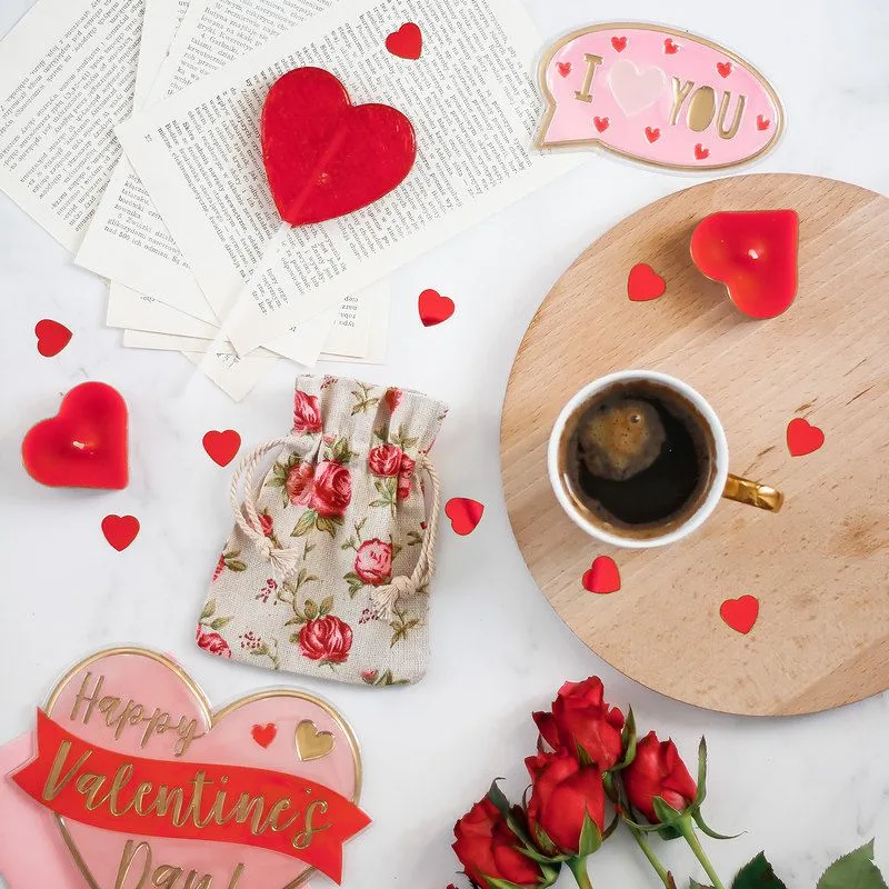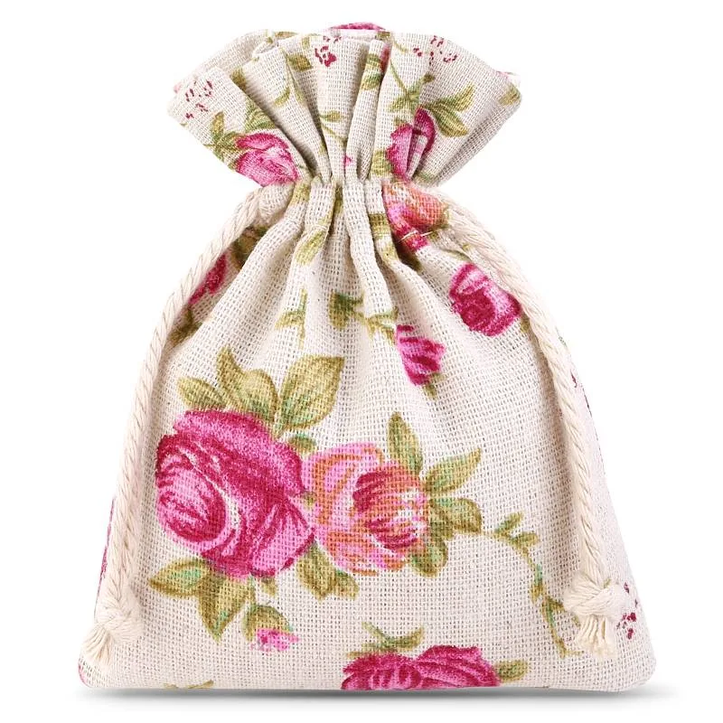 10 szt. Woreczki à la lniane z nadrukiem 11 x 14 cm - naturalne / róże
