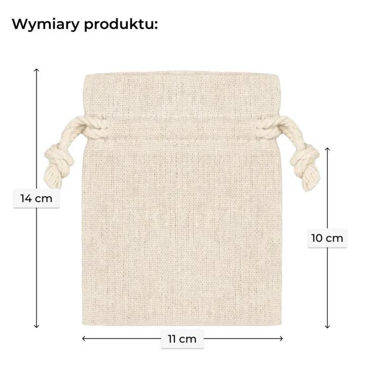 Woreczki lniane to bez wątpienia najbardziej uniwersalne sakiewki, które cieszą się popularnością zarówno wśród klientów prywatnych, jak i biznesowych. W zestawie znajduje się 10 sztuk woreczków materiałowych wykonanych z bawełny i poliestru. Połączenie tych tkanin pozwoliło nam uzyskać trwałą i odporną na rozciąganie imitację naturalnego lnu. Woreczki materiałowe 11 x 14 cm przypominają len zarówno pod względem koloru, jak i faktury czy splotu. W naszej ofercie znajdują się również woreczki lniane 11 x 14 uszyte ze 100% naturalnego lnu polskiej produkcji.