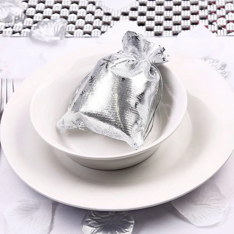 25 szt. Woreczki z organzy 7 x 9 cm (SDB) - srebrne