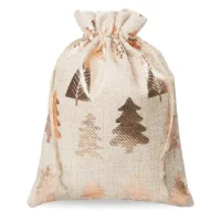 5 woreczków z juty 15x20 cm - choinkowy nadruk w złotej odsłonie