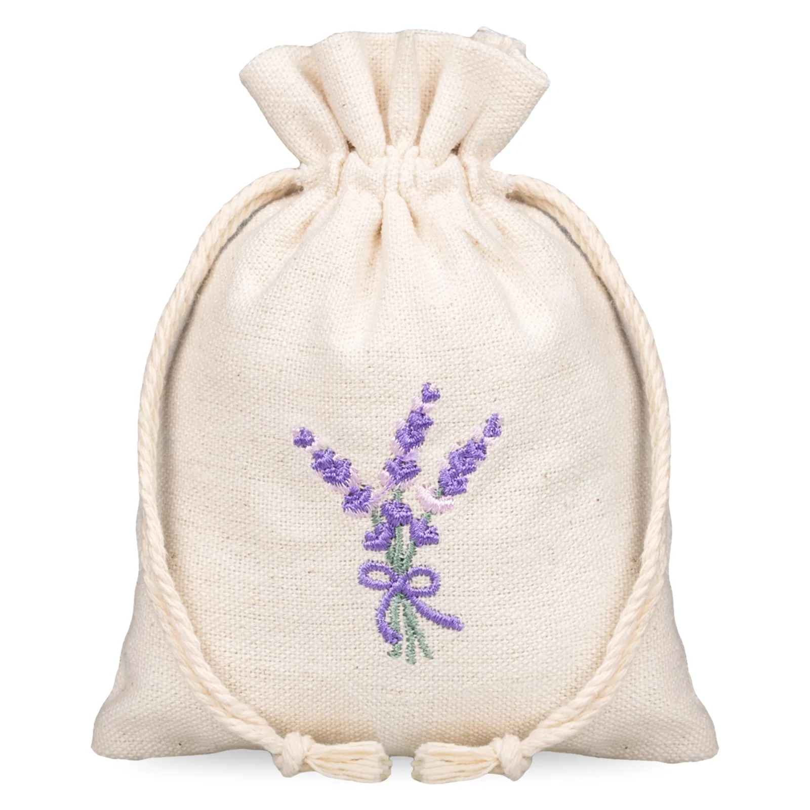 Woreczki na lawendę z haftem - 10 sztuk, 9x12 cm, z tkaniny o lnianym wyglądzie