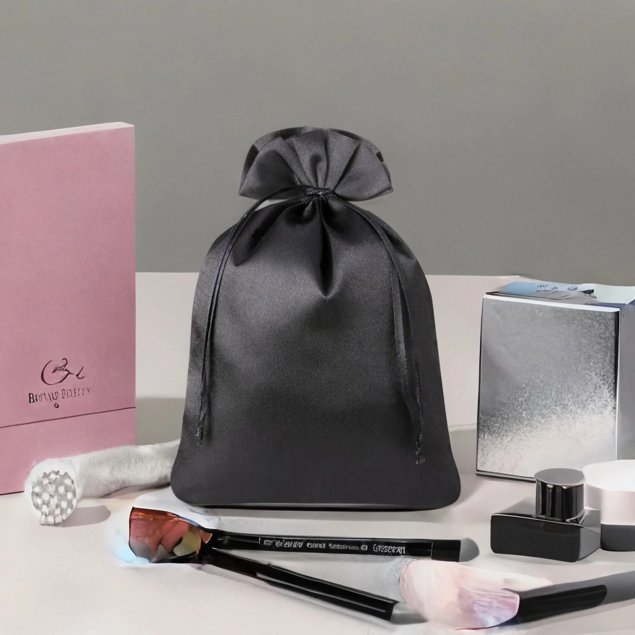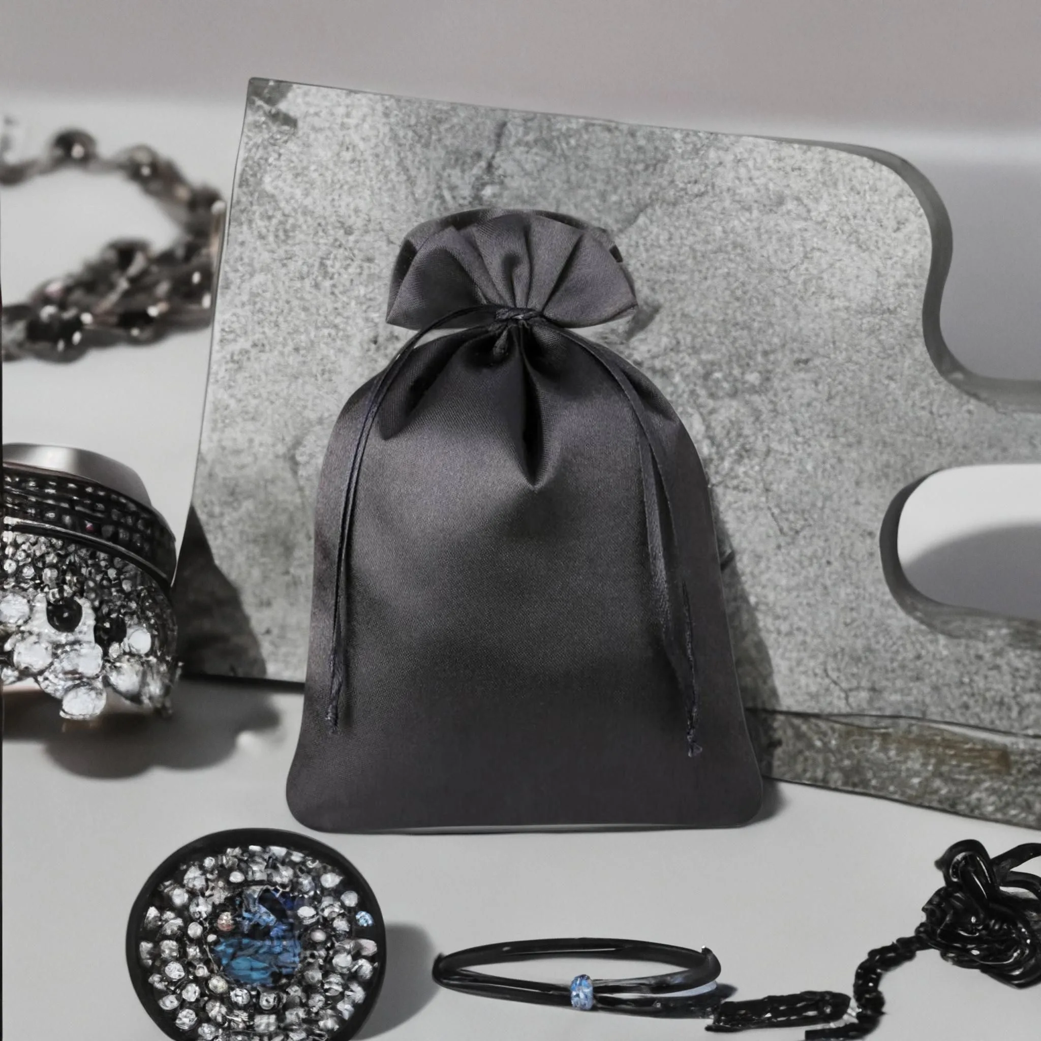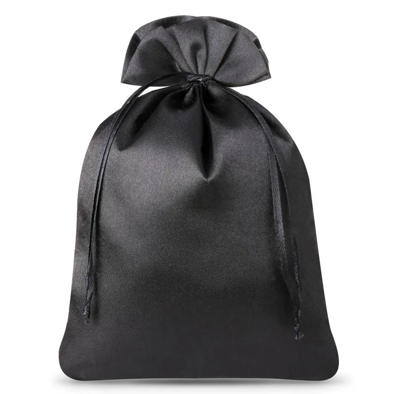 Pakiet 5 sztuk ozdobnych woreczków satynowych o wymiarach 15 x 20 cm w kolorze czarnym.