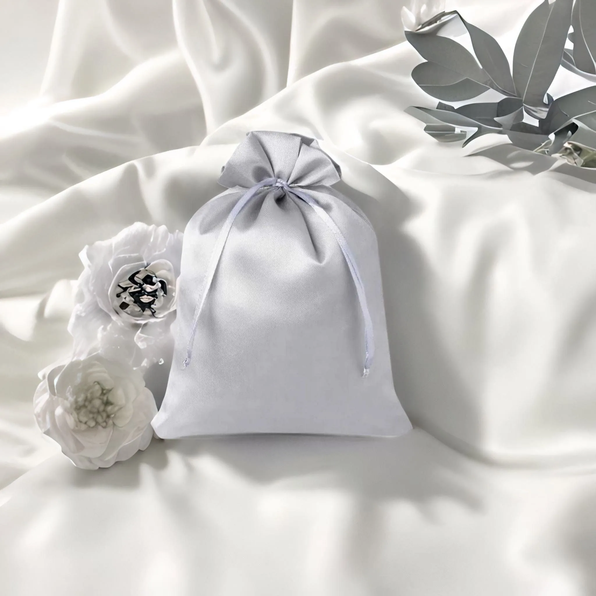 Srebrne woreczki satynowe - stylowe opakowanie na upominki urodzinowe i prezenty
