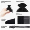 Oferujemy Państwu zestaw 10 sztuk woreczków wykonanych z weluru o wymiarach 6 x 8 cm. Ten praktyczny pakiet dostępny jest w kolorze czarnym i posłuży na dłuższy okres czasu.