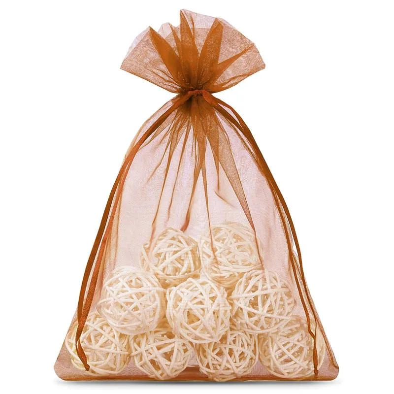 25 szt. Woreczki z organzy 13 x 18 cm - brązowe
