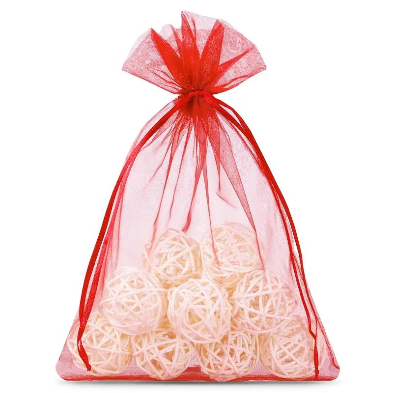 Uniwersalny pakiet średnich woreczków z organzy w kolorze czerwonym o rozmiarze 15 cm x 20 cm to doskonały sposób na uniwersalne wyposażenie dodatkowe domu - zestaw zawiera aż 10 sztuk, dlatego zakup będzie służył Ci przez dłuższy czas zawsze wtedy, kiedy będziesz potrzebował dodatkowego miejsca na rzeczy.
