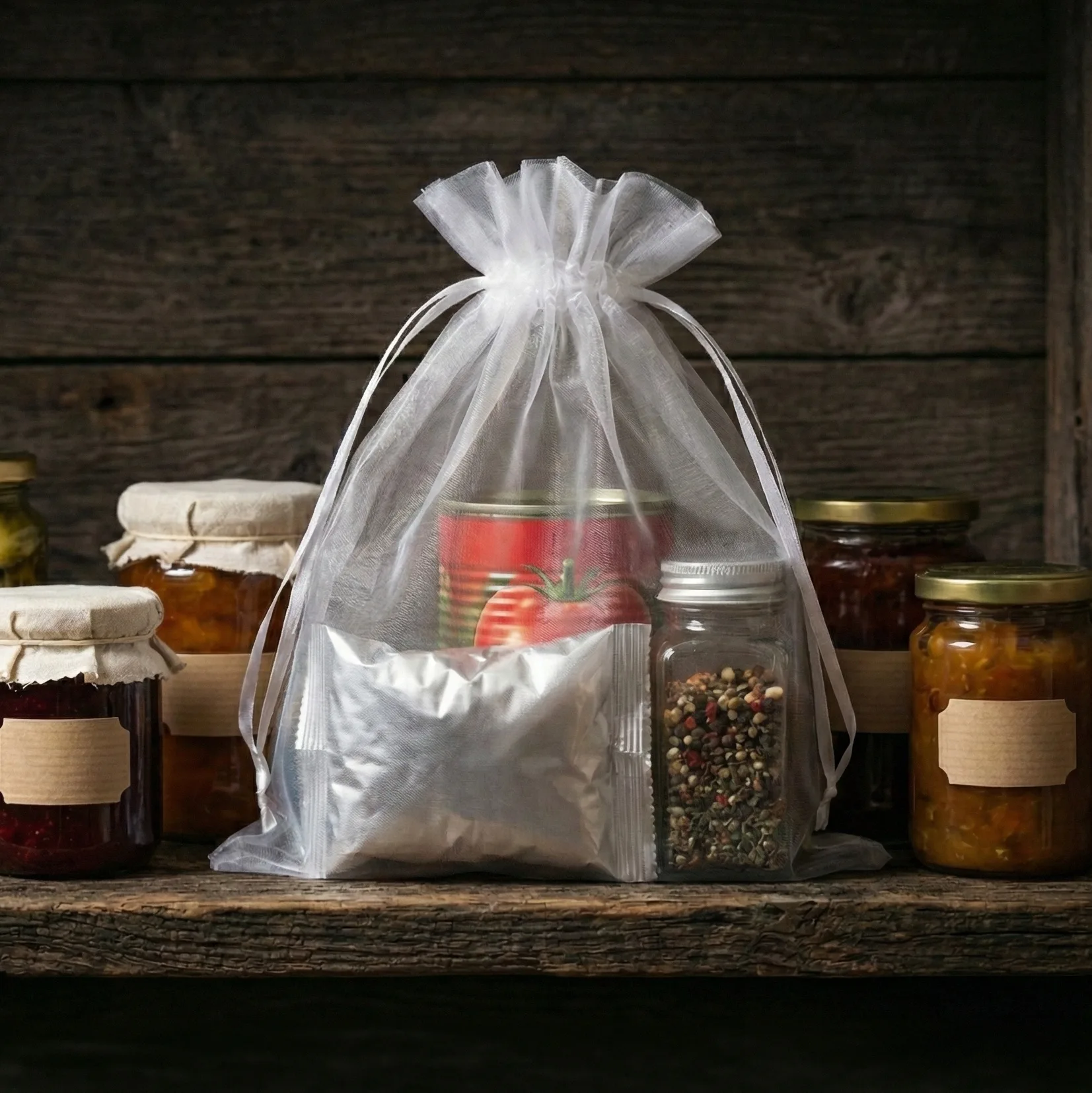 Większe prezenty i produkty wymagają odpowiedniej oprawy. Nasz zestaw 10 dużych woreczków z organzy 18 x 24 cm to idealne rozwiązanie, które łączy elegancką prezentację z praktyczną ochroną. Ich zwiewna, półprzezroczysta tkanina subtelnie eksponuje zawartość, dodając jej klasy, a jednocześnie chroni przed kurzem i zaciągnięciami. To idealny wybór do pakowania odzieży czy zestawów kosmetyków.