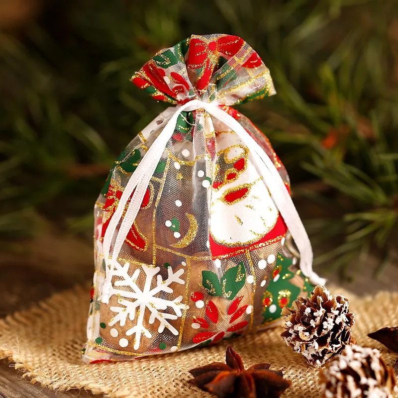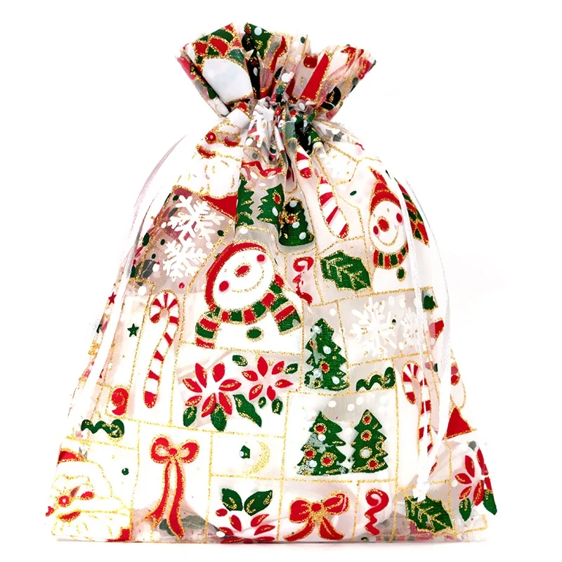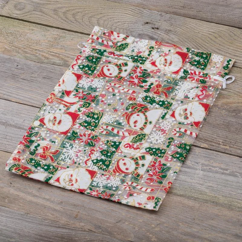 Worki na prezent z organzy 30 x 40 cm - 3 szt - bożonarodzeniowe opakowania
