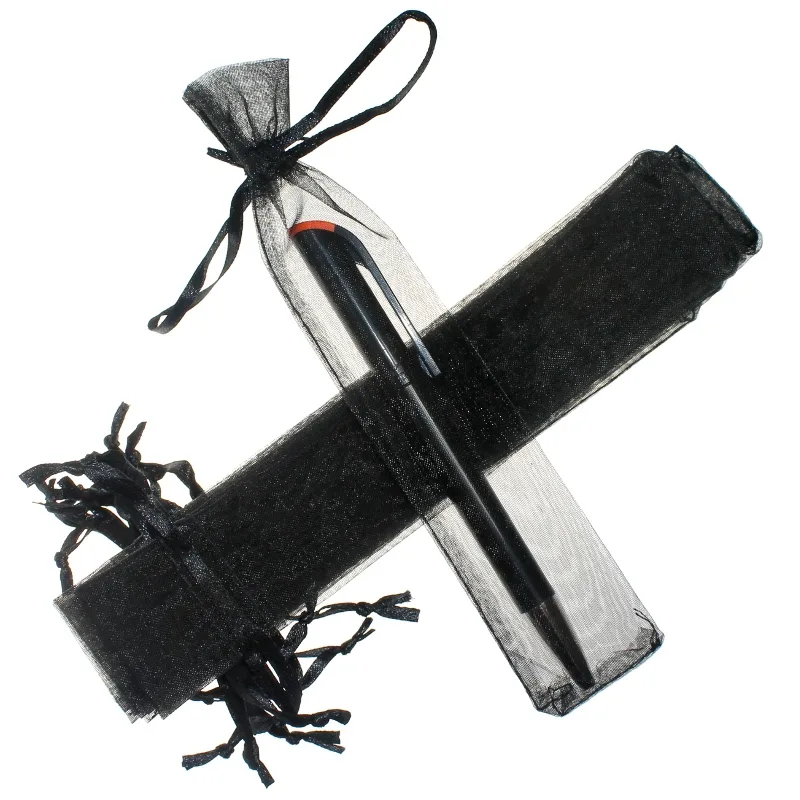 Praktyczny zestaw małych woreczków z organzy o wymiarach 3,5 cm x 19 cm. Pakiet zawiera 25 sztuk w kolorze czarnym, dzięki czemu zapewnia dużo przestrzeni na niewielkie przedmioty.
