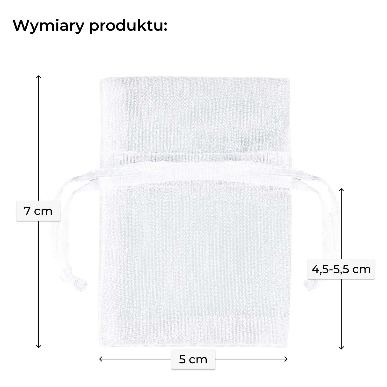 Woreczki z organzy 7 x 9 cm, z pojedynczą wstążeczką, zaciągane na jedną stronę, 25 szt