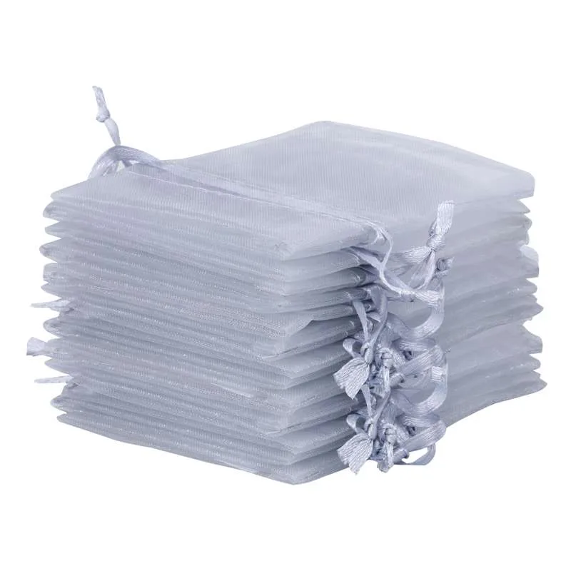 25 x Srebrne woreczki z organzy 6 x 8 cm - eleganckie opakowanie na drobiazgi