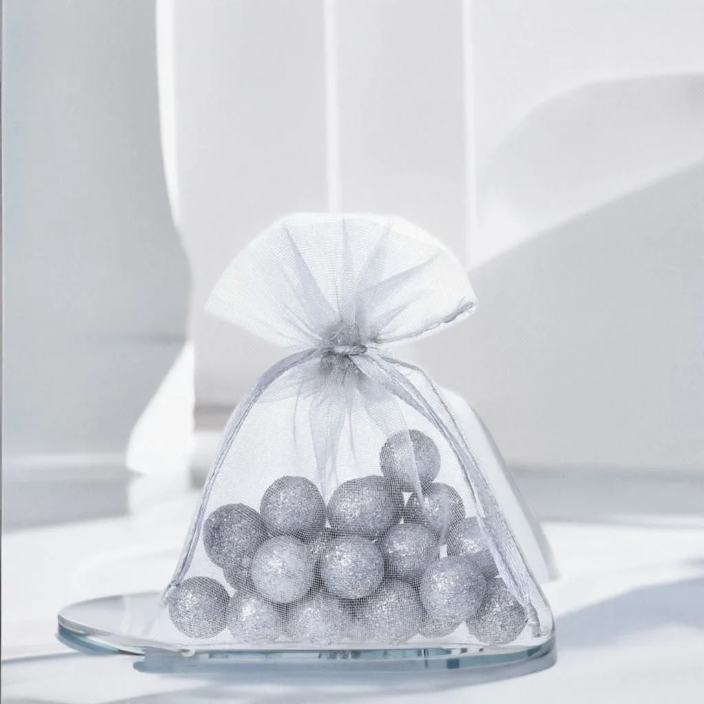 25 szt. Woreczki z organzy 7 x 9 cm - srebrne
