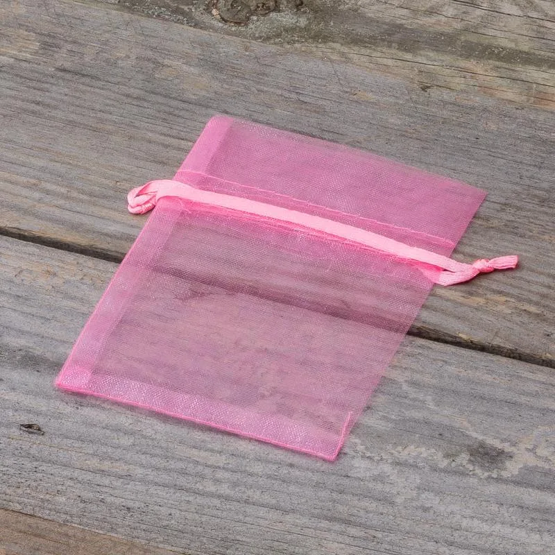 Zestaw niedużych woreczków z organzy o wymiarach 8 cm x 10 cm w kolorze różowym. Ten praktyczny pakiet zawiera w sobie 25 sztuk, dzięki czemu jednorazowy zakup wystarczy na dłuższy czas.