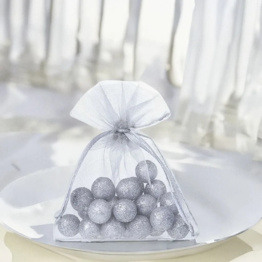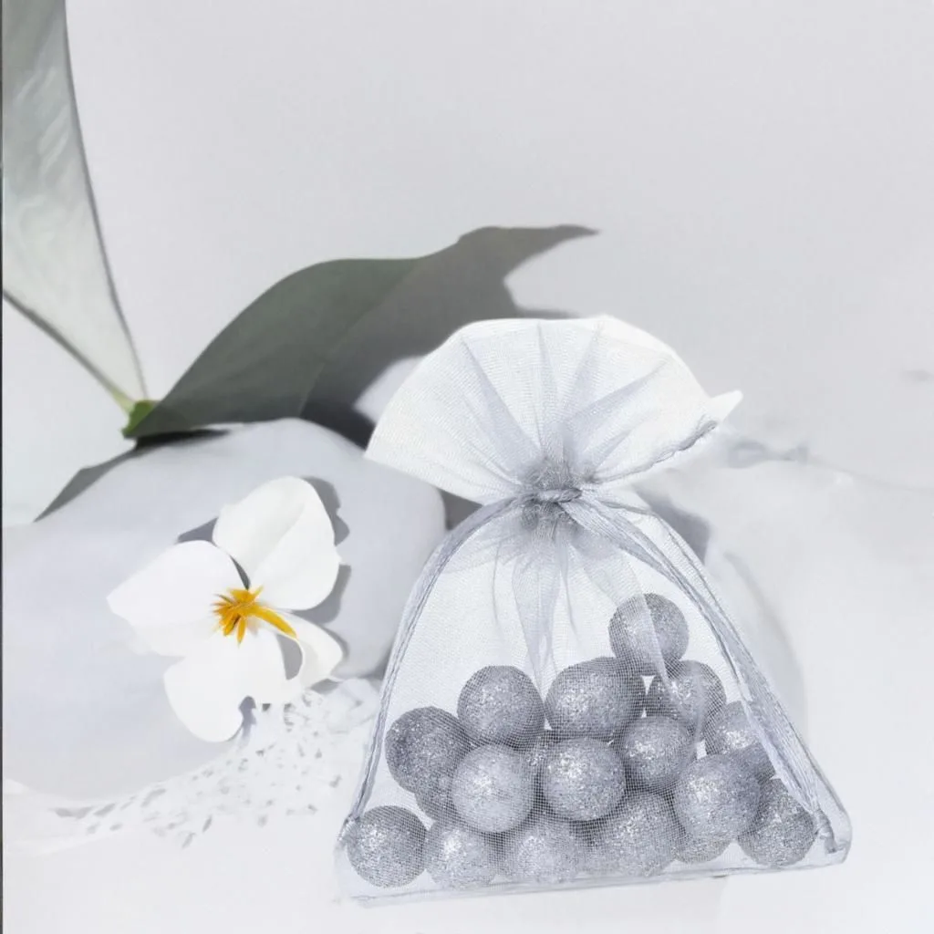 25 szt. Woreczki z organzy 8 x 10 cm - srebrne