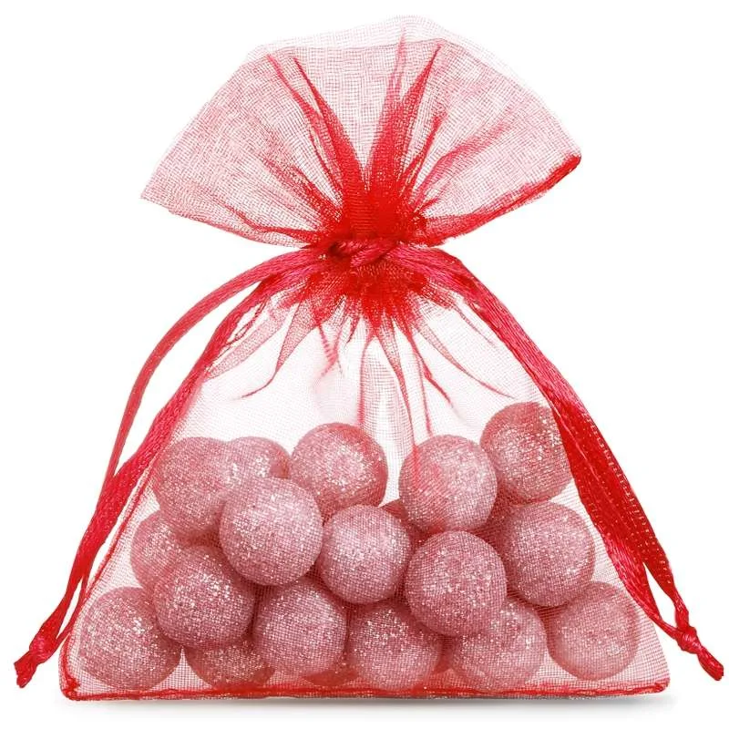 Zestaw niewielkich, ale bardzo praktycznych woreczków z tkaniny organza, określanych również jako torebki szyfonowe. Oferowana całość dotyczy zestawu 25 sztuk w czerwonym kolorze, zaś wymiary pojedynczego woreczka wynoszą 9 cm x 12 cm.