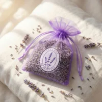 10 szt. Organzowe woreczki na lawendę 9 x 12 cm, fioletowe ciemne z nadrukiem Lavande de Provence