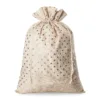 - Luksusowy nadruk w złote kropki: Błyszczące, złote punkty rozświetlają naturalne tło, czyniąc worek wyjątkowo efektownym i świątecznym.