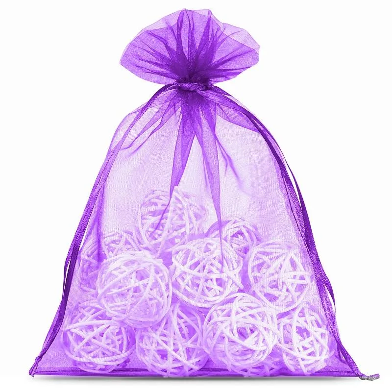 10 szt. Worki z organzy 22 x 30 cm - fioletowe ciemne